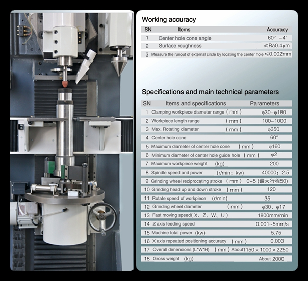 This machine is mainly used for grinding the central hole of shaft parts, especially for the large central hole (such as the machine tool spindle), to ensure the concentricity of the two ends of the central hole, to provide the accuracy of the central hole.